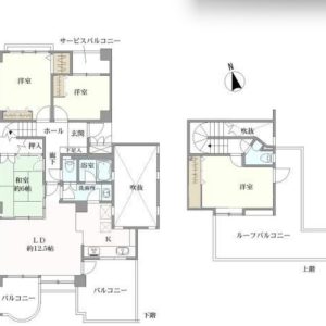 最上階メゾネット4LDK、南向きで陽当り良好!空室の為、即内覧入居可能!