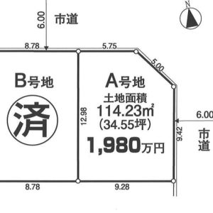 - 東側6m幅(接道幅9.4m)、北側6m幅(接道幅5.7m)